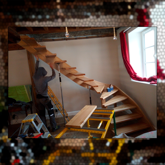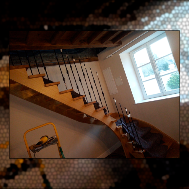 Escalier en chêne massif verni,