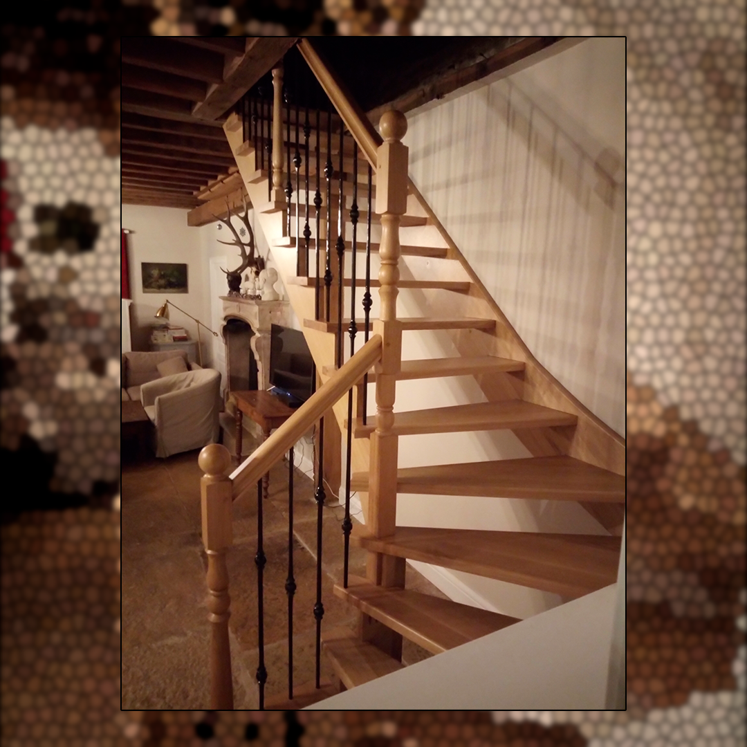 Escalier en chêne massif verni,